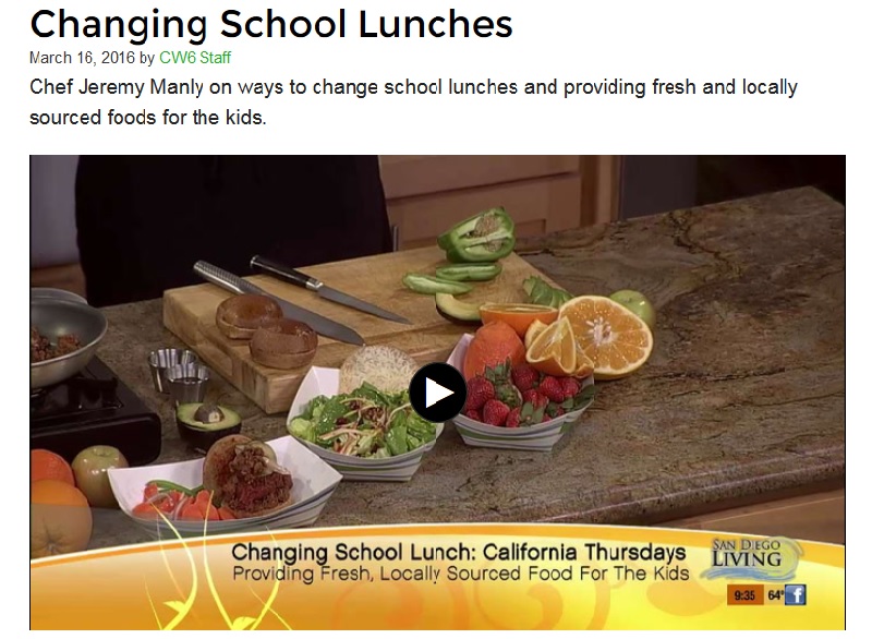 In the weeks following, farm-to-school has been front and center in the local media. On March 16th, CW6 San Diego dedicated a video segment interviewing (and cooking with!) Chef Jeremy Manley, the chef and owner of Jeremy’s on the Hill, a local farm to table restaurant in Julian which, through a unique partnership, prepares all the meals for Julian Union Elementary School District (JUESD). Together they cooked “Bison Joes” (sloppy joes made with local bison) and discussed the lauch of California Thursdays in JUESD.